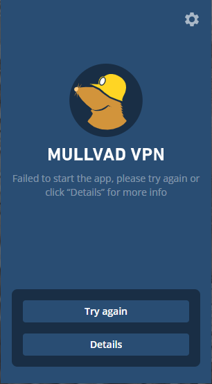 This means that the Mullvad VPN Service has not been able to start. Try to click on Try again. If it does not help then do the following:
